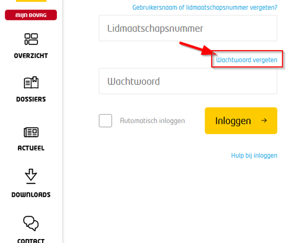 Om op mijn.bovag.nl overal bij te kunnen, moet je vanaf 28 mei een nieuw wachtwoord aanmaken. De reden hiervan is dat we de techniek achter mijn.bovag.nl hebben vernieuwd. Hoewel je er aan de voorkant nu niet veel van ziet, hebben we achter de schermen in de afgelopen maanden hard gewerkt om de website veilig te houden en toekomstbestendig te maken. De website is daarnaast ook sneller en we hebben de zoekmachine verbeterd.